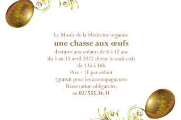 Le Musée de la Médecine organise pour sa première édition post-Covid sa chasse aux œufs pour les centres de vacances destinée aux enfants de 6 à 12 ans du 5 au 15 avril 2022 à 9h et 11h (exceptés le week-end et le lundi 4 avril 2022) Gratuit. Réservation obligatoire +32 2…