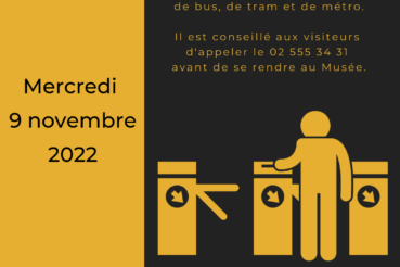 La journée de grève nationale de mercredi 9 novembre perturbera fortement le réseau de bus, de tram et de métro. Il est conseillé aux visiteurs d’appeler le 02 555 34 31 avant de se rendre au Musée.