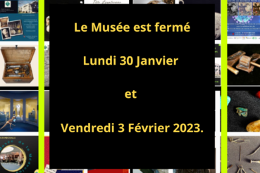 Le Musée sera inaccessible au public lundi 30 janvier et vendredi 3 février 2023. Merci de votre compréhension.