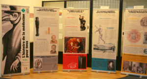 Il s’agit d’une exposition itinérante à destination des écoles secondaires et institutions de jeunesse. Elle se compose de panneaux explicatifs illustrés, d’objets de médecine ancienne, de photographies et d’archives ! Différents thèmes sont abordés : grandes théories médicales, histoire des hôpitaux, développement de la chirurgie et de la pharmacie. L’histoire de la médecine n’aura plus aucun secret pour les jeunes visiteurs.