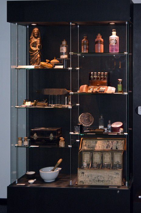 De zaal opent met een reeks Etruskische ex-voto’s en Grieks-Romeinse marmeren beelden. Daarna volgen verwijzingen naar religieuze geneeskunde in de middeleeuwen, oude schilderijen met medische taferelen (zoals kwakzalvers die de steen der waanzin verwijderen, urinekijkers, …), antieke beeldhouwwerken en therapeutische benaderingen (koppen zetten, aderlatingstassen, klysma’s, …) die voorafgaan aan het wetenschappelijke tijdperk. Ten slotte komen de grote ontdekkingen van de 19de eeuw aan bod, met aandacht voor de evoluties op het vlak van diagnose (stethoscopen, microscopen en andere instrumenten) en therapie (een 19de eeuw apotheek en plattelandspharmacies).